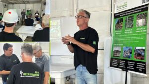 Recebidos pelo engenheiro civil Nilson, os participantes puderam acompanhar, inicialmente, a parte teórica, compreendendo os conceitos, benefícios e a importância das formas de cimbramento modular nas obras. Em seguida, o grupo partiu para a visita técnica, onde foi possível vivenciar a aplicação prática do sistema diretamente na obra, com o manuseio dos equipamentos e a compreensão real do funcionamento do produto no dia a dia da construção.
